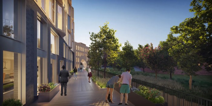 “The green walkway actually connects through the whole neighborhood and goes through each of the blocks and connects into these series of arches,” Valgora said, “So it does create this kind of pedestrian connection.”