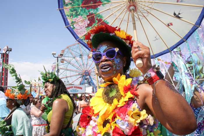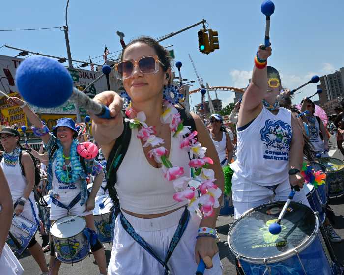 The scorching heat didn’t dampen the spirits of the more than 30,000 spectators who cheered on the colorful, quirky procession of more than 300 groups as it made its way down Surf Avenue, turned up West 10th Street and continued onto the Boardwalk to Steeplechase Plaza, where the parade disbanded.