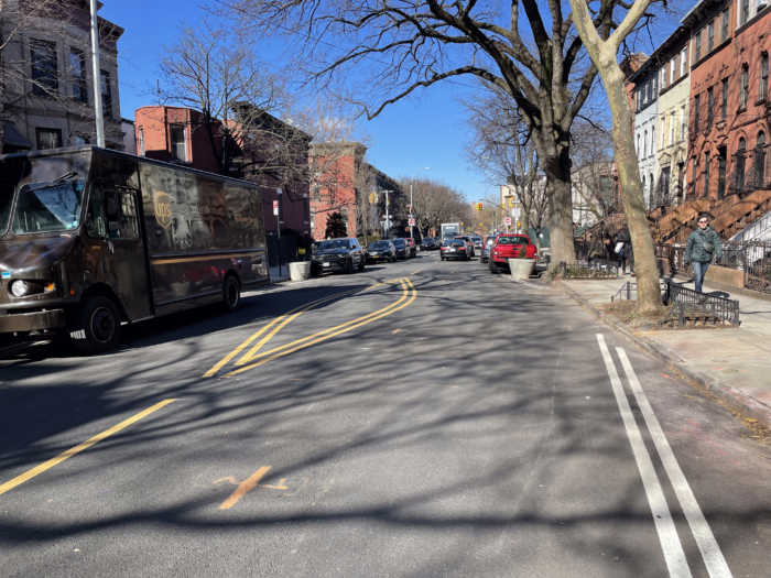Brought to a halt near-completion last September, the DOT project to turn the largely-residential Prospect Heights street into a “bike boulevard” was put on ice by Mayor Eric Adams who claimed additional community input was needed — despite previous DOT and local surveys indicating support was largely behind the street-calming redesign.