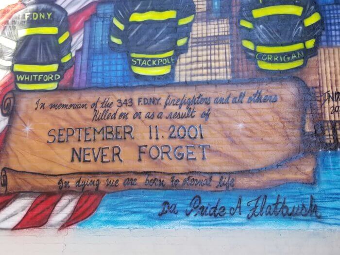 A Flatbush firehouse has put up a massive new mural on the side of its building to commemorate the 343 firefighters who lost their lives on Sept. 11, 2001, just as the 20th anniversary of the tragedy looms.