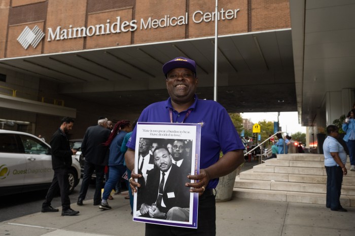 At the rally at Maimonides Medical Center, 1199SEIU healthcare workers stood in solidarity with their Haitian coworkers, condemning Trump’s rhetoric.