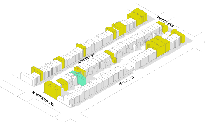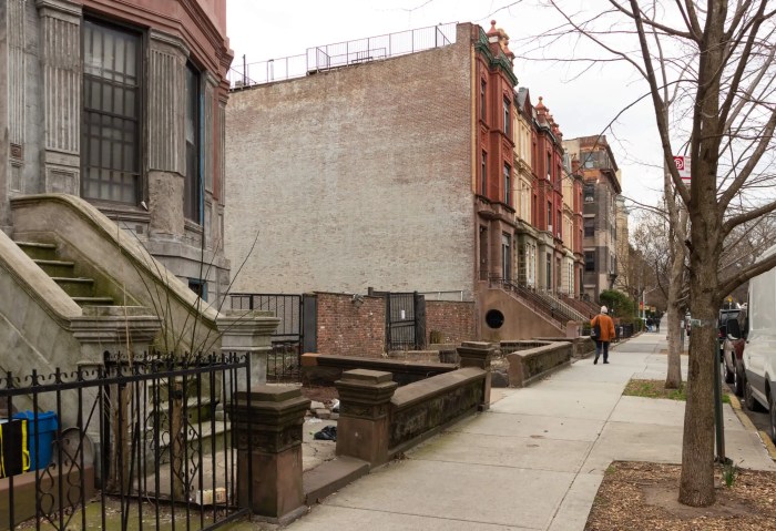 “HDC agrees with Brooklyn Community Board 3 that the proposed building is too wide and too deep, crowding the designated corner facade of the historic mansion at 168 Hancock,” she said. “Given that this land has been an historic community asset to neighbors in Bedford Stuyvesant for almost 150 years, the proposed building should be shrunk in terms of width and depth to maintain a sense of historic open space and defer to the three designed historic facades of 168 Hancock.”
