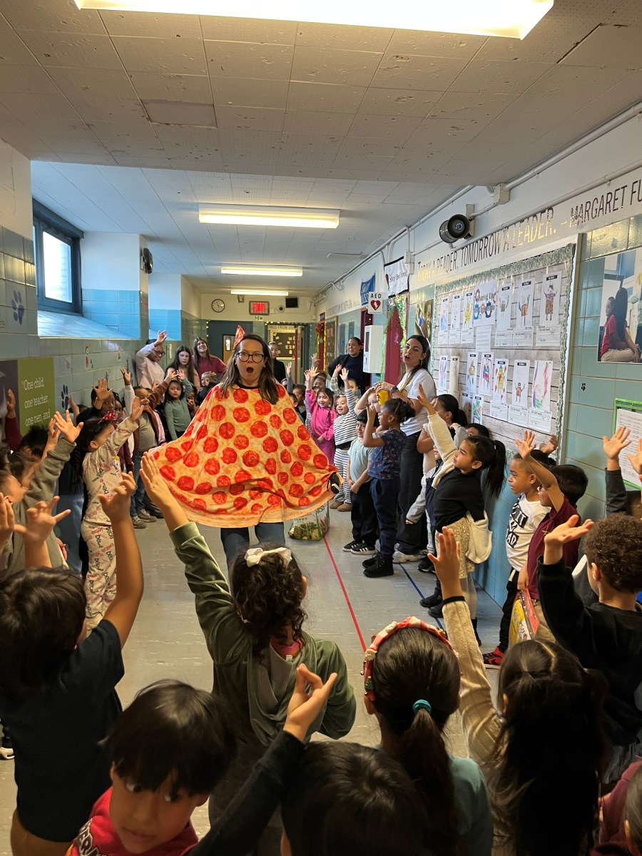 Ms. Saretzky is the kind of leader who hosts monthly pizza parties for classrooms as a reward for exemplary behavior or strong attendance. But she doesn’t just hand out pizza. She becomes the pizza lady.