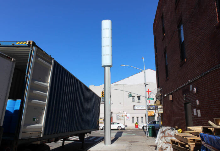 Over the past few months, a number of the new 32-foot-tall transmitters, the next generation model of the LinkNYC WiFi kiosks that replaced pay phones across the city, have been installed in Brooklyn. The NYC Link5G kiosks are part of a deal with New York City to expand high bandwidth cell and Internet service throughout the five boroughs. Brooklyn is set to get at least 147 of the transmitters, Office of Technology and Innovation Senior Director of Communications Ray Legendre told Brownstoner. The rollout comes at a time when 5G is becoming common in the borough, with carriers such as AT&T and Optimum having recently upgraded their networks.