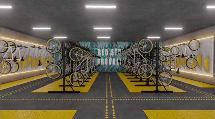 The two planned facilities in Sunset Park and Bedford-Stuyvesant are expected to each have space for dozens of bikes in a secure, free-to-use space open to the public, says company founder Shabazz Stuart, who unveiled the new designs in a Medium post on Monday.