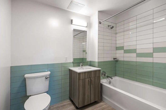 Renderings show the exterior of the two connected buildings has a facade of dark red, dark grey, and tan brick. Renderings of the interior of 171 Throop Avenue depict spacious bathrooms with green and white tiling and light, open units with large windows, white walls, and pale wood flooring and doors. Monica Lopez is the architect of record behind the design, according to permits. Lopez designed another supportive housing project at 316 East 162nd Street in the Bronx.